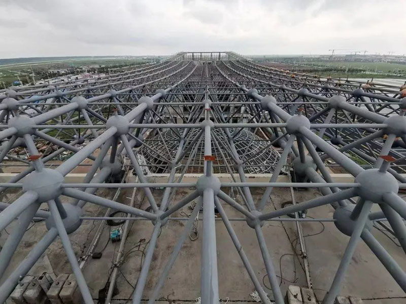 吉利飛行汽車(chē)項(xiàng)目汽車(chē)展廳鋼結(jié)構(gòu)工程,主體是直徑32米的橢圓形空間桁架結(jié)構(gòu),本工程加工工藝復(fù)雜,構(gòu)件數(shù)量多且雜,車(chē)間及現(xiàn)場(chǎng)焊接工作大,主構(gòu)件對(duì)接焊接均要求一級(jí)焊縫,施工期間兩臺(tái)全站儀同時(shí)不同角度測(cè)量,配合臨時(shí)支撐架現(xiàn)場(chǎng)有序、施工,整體工期45天。